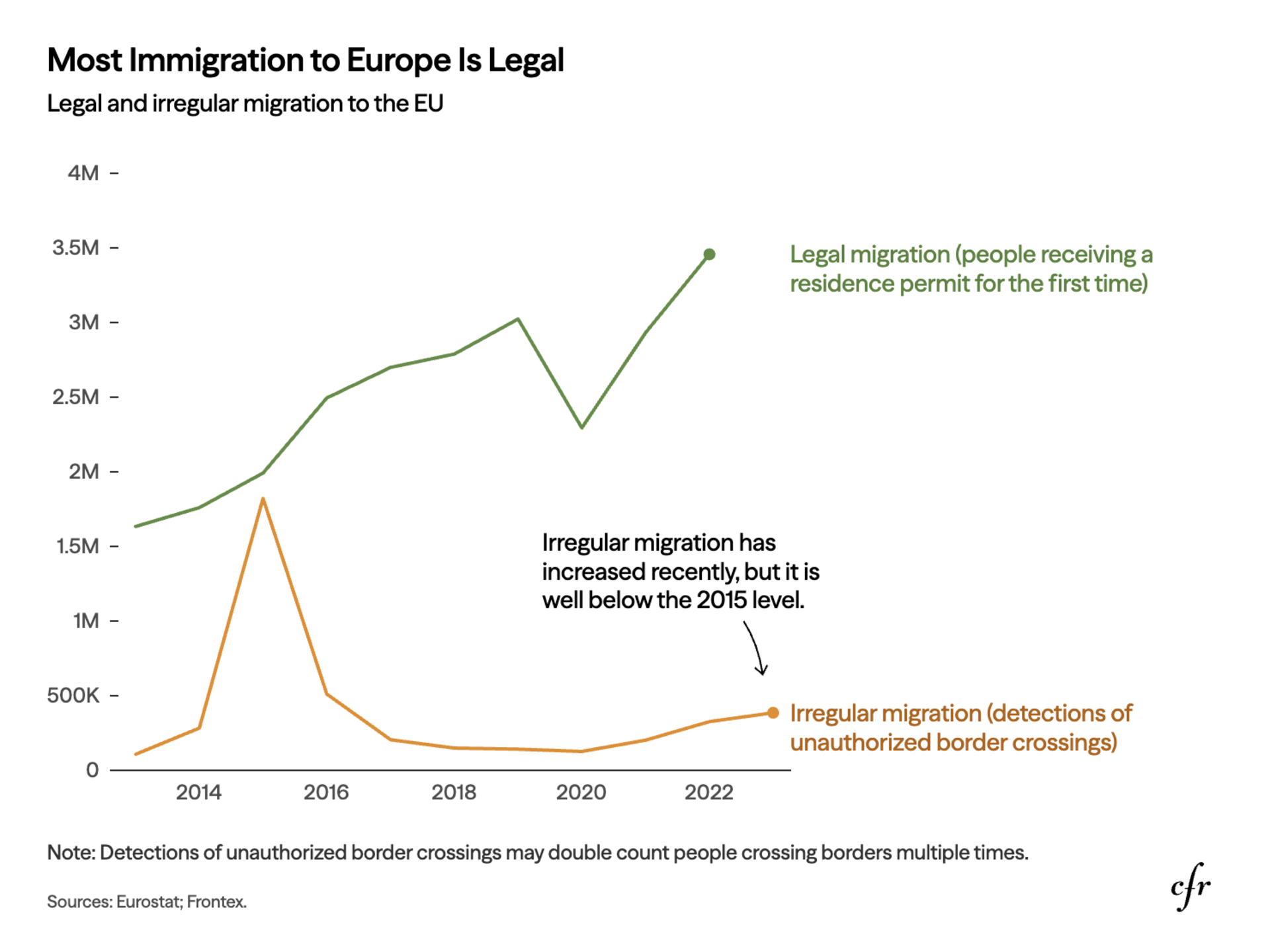 While the vast majority of migrants to Europe arrive legally, the continent has seen a steady increase in irregular immigration, in which migrants arrive in Europe without legal permission.