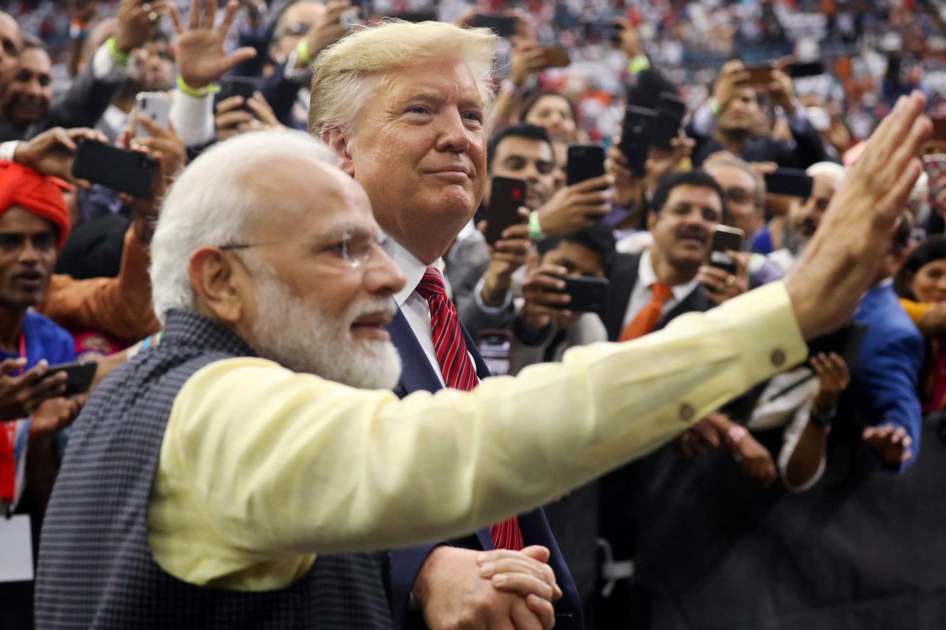 There’s been a lot of coverage of the scale and unprecedented nature of Sunday’s “Howdy, Modi!” rally—the 50,000-plus Indian American participants in the enormous NRG Stadium in Houston, the meaning of U.S. President Donald J. Trump’s opening-act appearance for Prime Minister Narendra Modi, and the recognition of the Indian American community’s growing political heft. In later remarks, Trump remarked upon the crowd’s adoration for Modi, calling him “an American (sic) version of Elvis.”