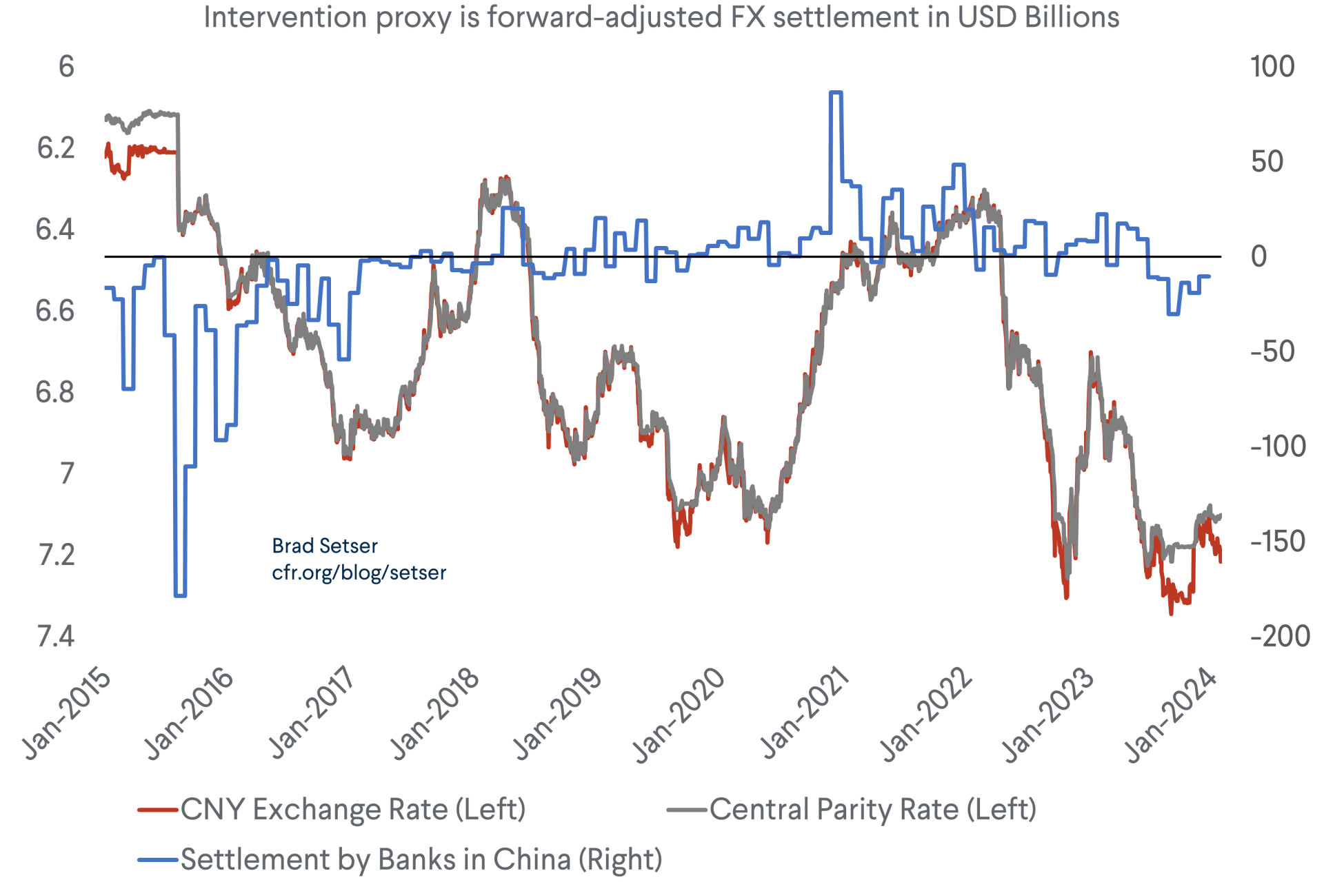 Up until early 2014 the PBOC was a large net buyer of foreign exchange in the market.