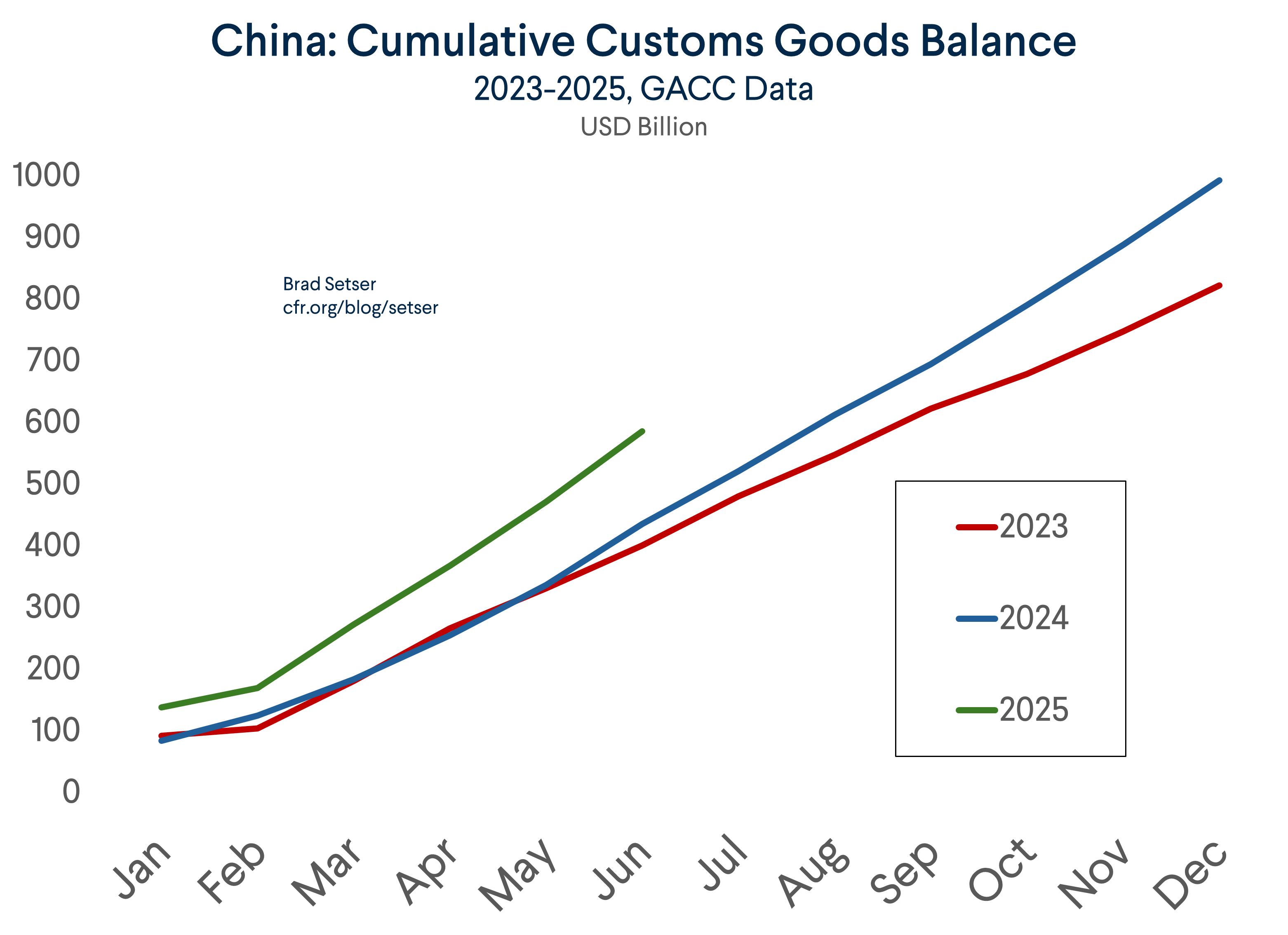 This is a joint post with Michael Weilandt, Research Associate at the Council on Foreign Relations. It is a review of China’s trade data and intervention metrics for the first half of 2025.