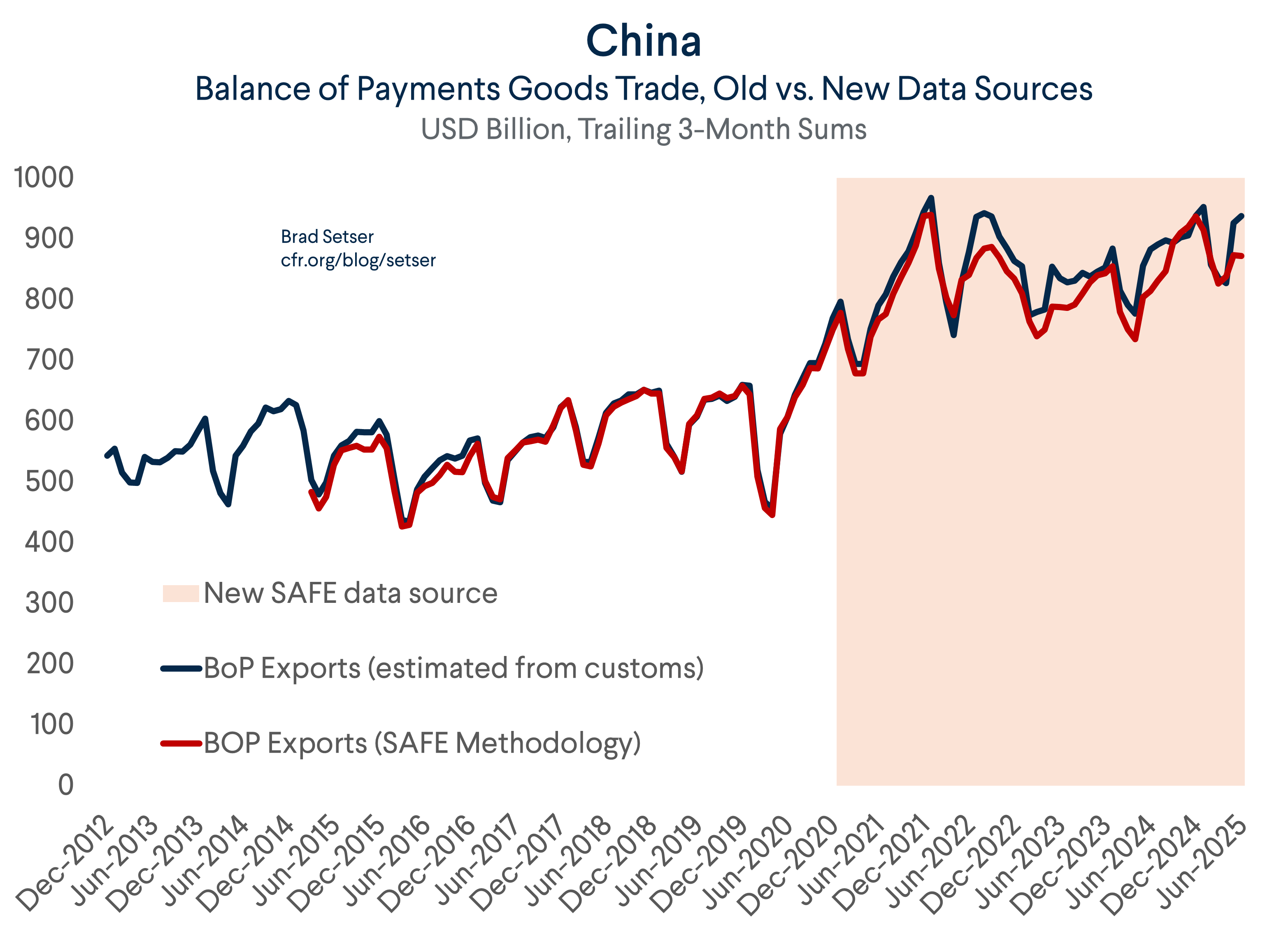 This unexplained variance calls into question the post-2021 BOP methodology that China now uses; the adjustment between the customs and BOP numbers has not been consistent.*