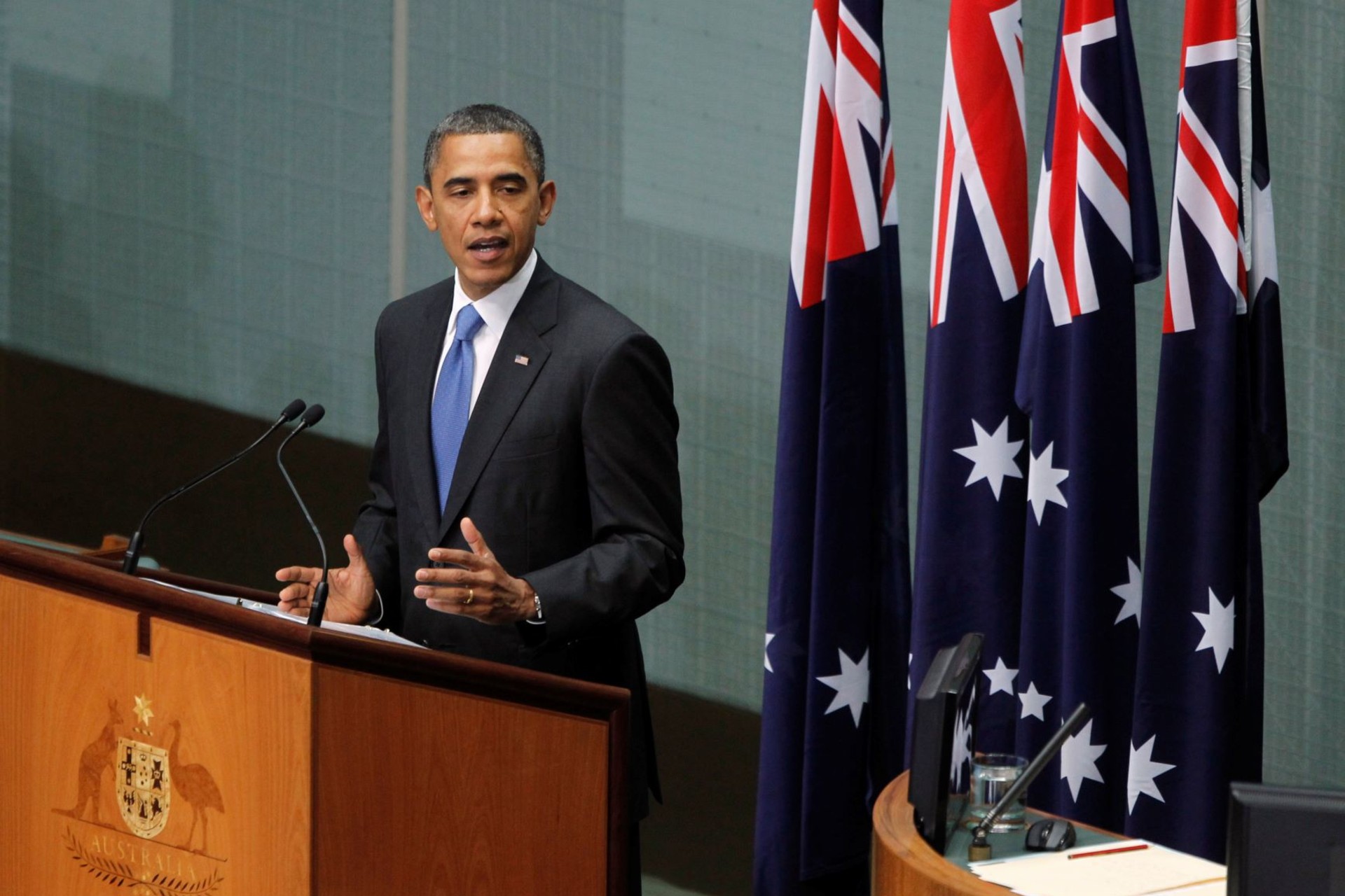 President Barack Obama announces the pivot to Asia in a speech to the Australian Parliament on November 17, 2011 REUTERS/Jason Reed