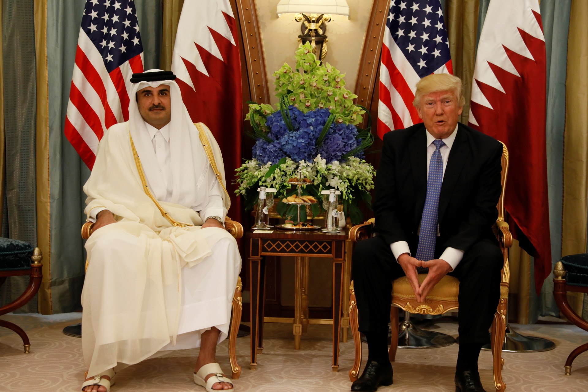Qatar’s Emir Sheikh Tamim Bin Hamad Al-Thani meets with U.S. President Donald Trump in Riyadh, Saudi Arabia, May 21, 2017. Jonathan Ernst/Reuters