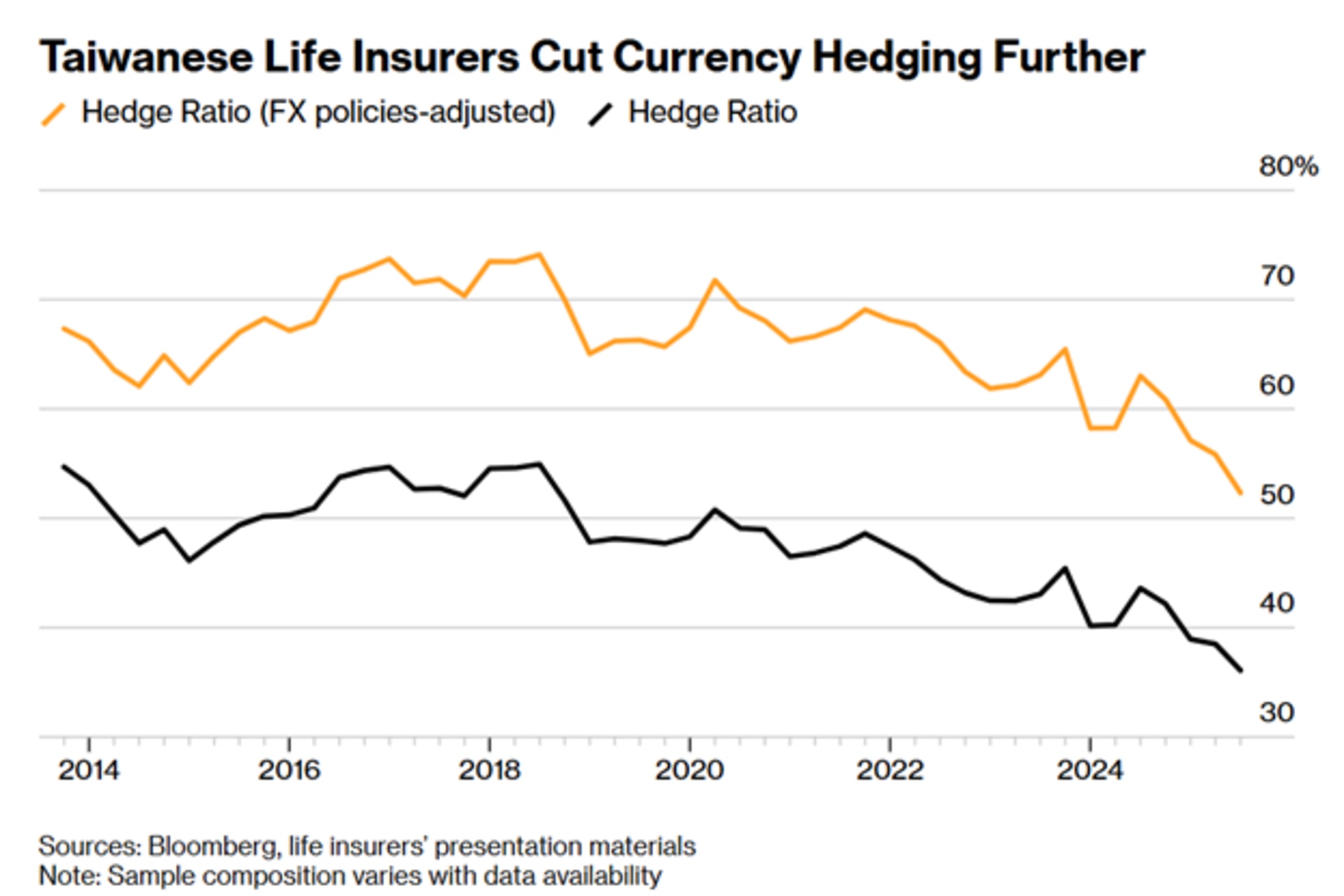 “Taiwan’s life insurers proposed changes to accounting rules earlier this year that would allow exchange rate fluctuations to be partially recognized over time, rather than having their full impact reflected immediately. As a decision on the proposal nears, insurers have been cutting their hedging again.”