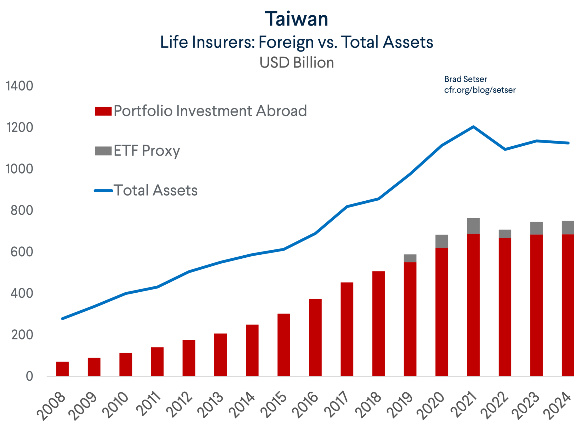 A brief technical interlude. But the way you avoid exposure to big swings in the foreign exchange market is by having liabilities in the same currency in which you have assets. And since the lifers’ true liabilities are in TWD, they have to borrow dollars to generate dollar liabilities, or swap for the dollars, which amounts to the same thing.