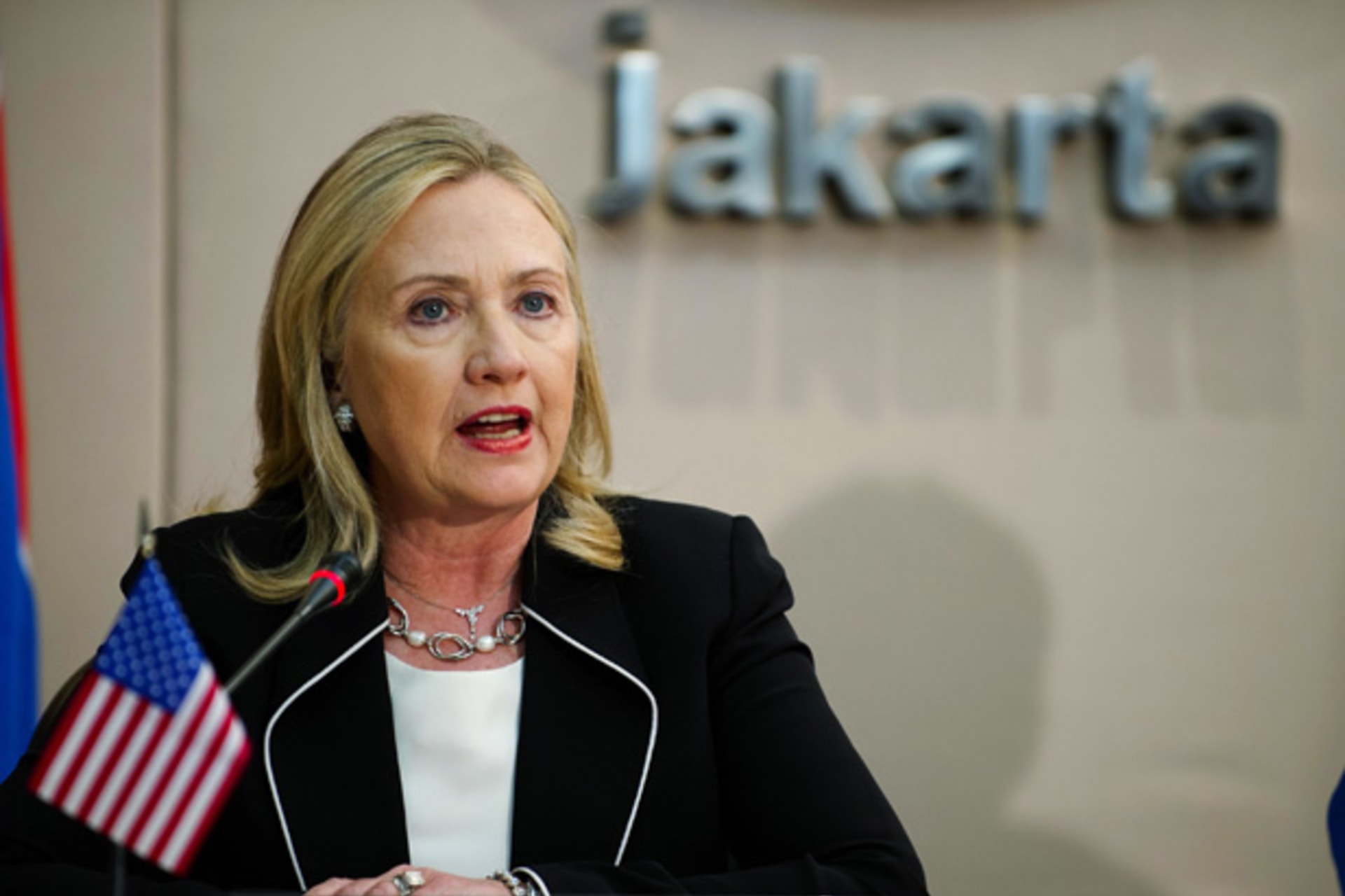 U.S. secretary of state Clinton delivers remarks during a meeting at the ASEAN Secretariat in Jakarta.