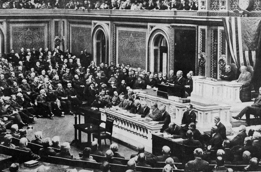 When Wilson arrived at the Capitol to address a joint session of Congress on January 8, 1918, the United States had been at war with the German-led Central Powers for nine months, though U.S. troops were only just then reaching Europe and few had yet gone into battle. It was a war that Wilson had long sought to avoid. He had declared the United States neutral when the war began in August 1914, famously urging Americans to be “impartial in thought as well as in action.” As late as January 1917, Wilson was calling for “peace without victory” by either the Central or Allied Powers. Even after Germany resumed unrestricted submarine warfare on U.S. merchant shipping ten days later, Wilson still balked at going to war. It was only in April 1917, after much of the country had turned against neutrality and Wilson’s cabinet was demanding that he act, that he asked Congress to declare war.