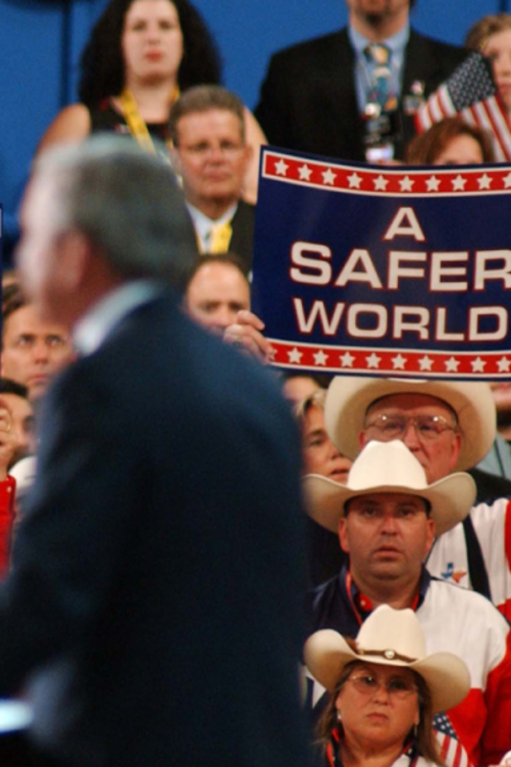 The GOP convention in 2004 emphasized national security issues, repeatedly invoking the September 11, 2001 terrorist attacks (PDF). “As Republicans, we do not equivocate, as others have done, about whether America should have gone to war in Iraq,” the party’s platform read. “President Bush had a choice to make: Trust a madman [Saddam Hussein] or defend America. He chose defending America.”
