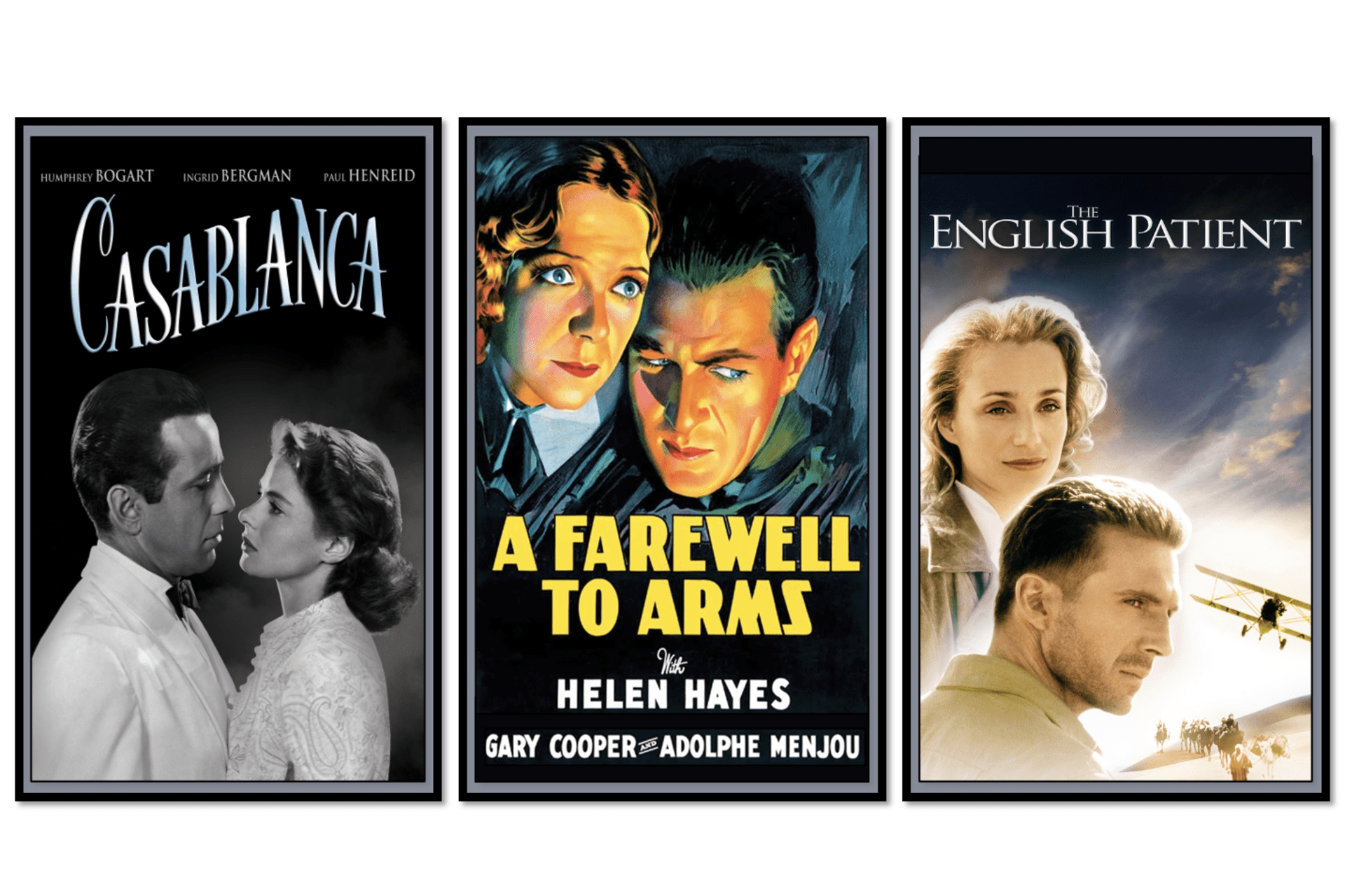 Casablanca (1942). Cynical American expatriate Rick Blaine (Humphrey Bogart) claims he wants no part of the war raging in Europe. That changes when his former lover (Ingrid Bergman) and her husband (Paul Henreid), a fugitive Czech resistance leader, arrive at his bar in Vichy French-controlled Casablanca. Based on the unproduced play Everybody Comes to Rick’s by Murray Burnett and Joan Alison, the drama can be viewed as a political allegory, with Rick as an isolationist United States being beseeched for aid. Henreid and many other members of the cast and crew were European refugees or exiles themselves; Conrad Veidt, who plays the Nazi antagonist Major Strasser, was a vehement anti-Nazi German. No one expected Casablanca to enjoy the commercial or critical success it did. It is one of the most quoted movies of all time. It also won the Oscar for best picture, best director for Michael Curtiz, and best adapted screenplay, and was nominated for five others. The American Film Institute ranks Casablanca the third greatest American film and the best love story of all time. You can watch it on Amazon Prime, HBO Max, or YouTube.
