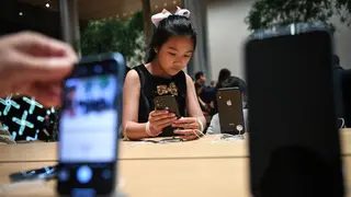 Young girl checks out an iPhone in November 2018. LILLIAN SUWANRUMPHA/AFP/Getty Images