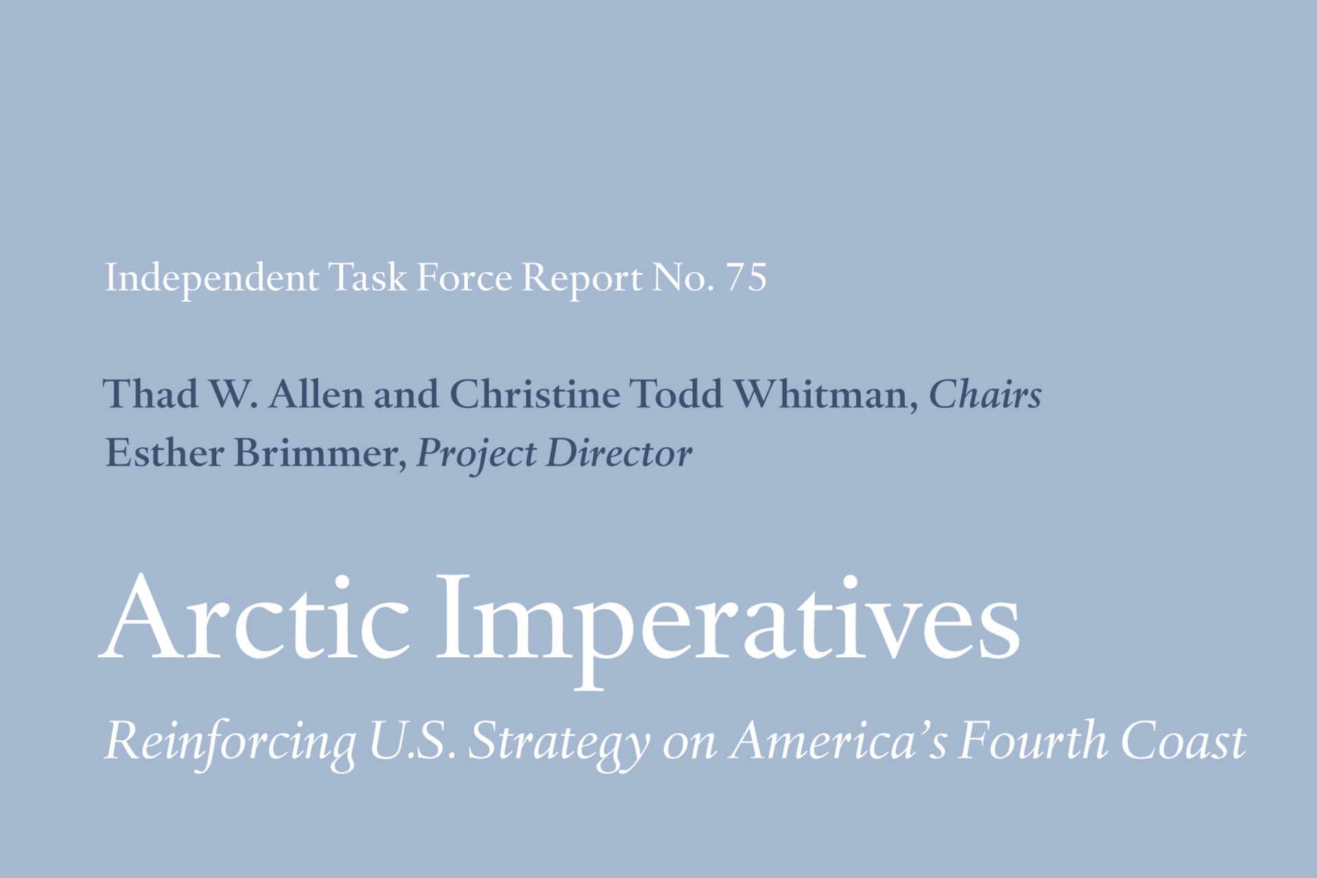 ReportArctic ImperativesMarch 21, 2017By Esther Brimmer, Thad W. Allen, Christine Todd Whitman and Anya Schmemann