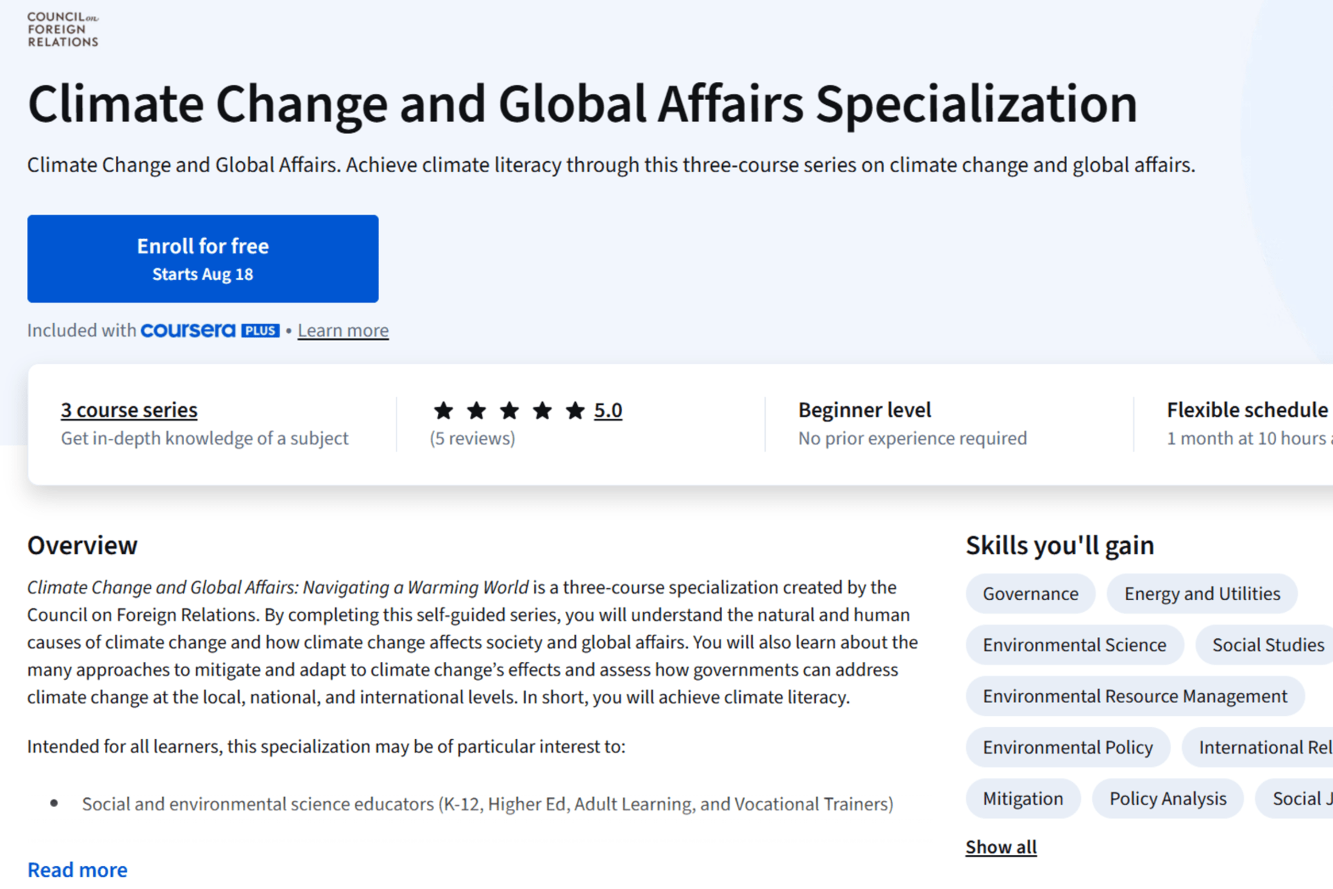 CFR Education completed a cobranded course with Coursera that offers learners inside and outside formal academic settings access to 101-level global affairs content.